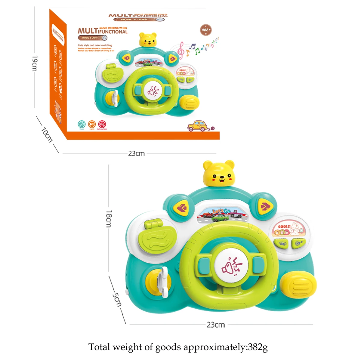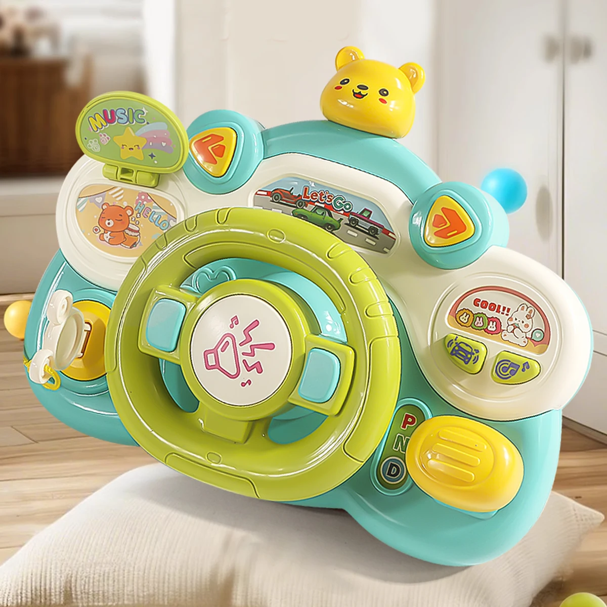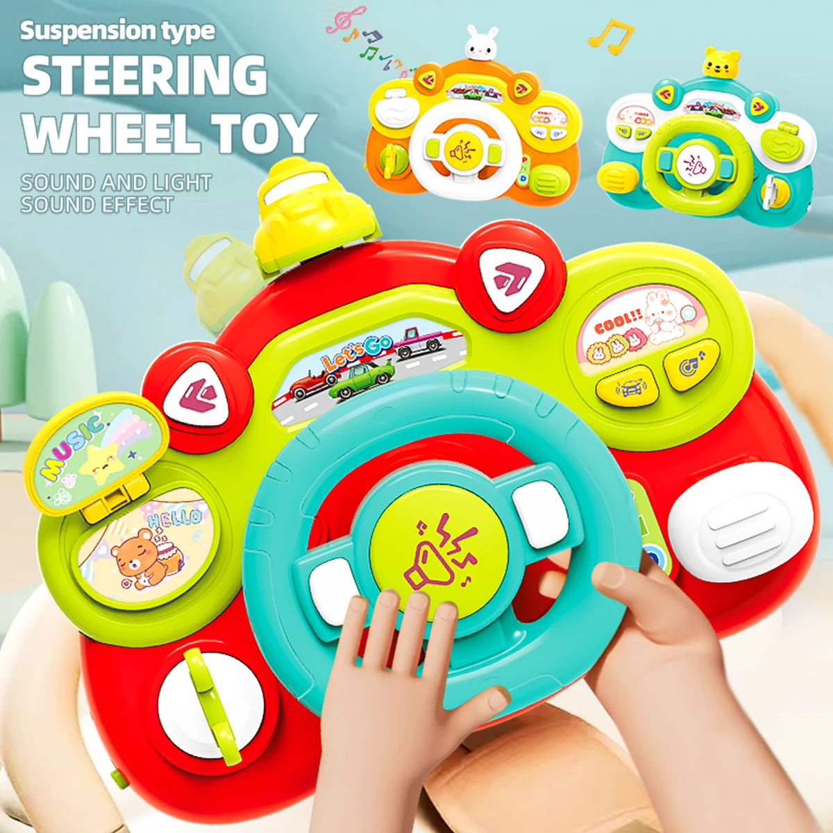 This musical steering wheel toy lets children experience the fun of simulated driving while learning and playing. Equipped with buttons that produce sounds, music, and voice prompts, it stimulates auditory senses and encourages imaginative role-play.
